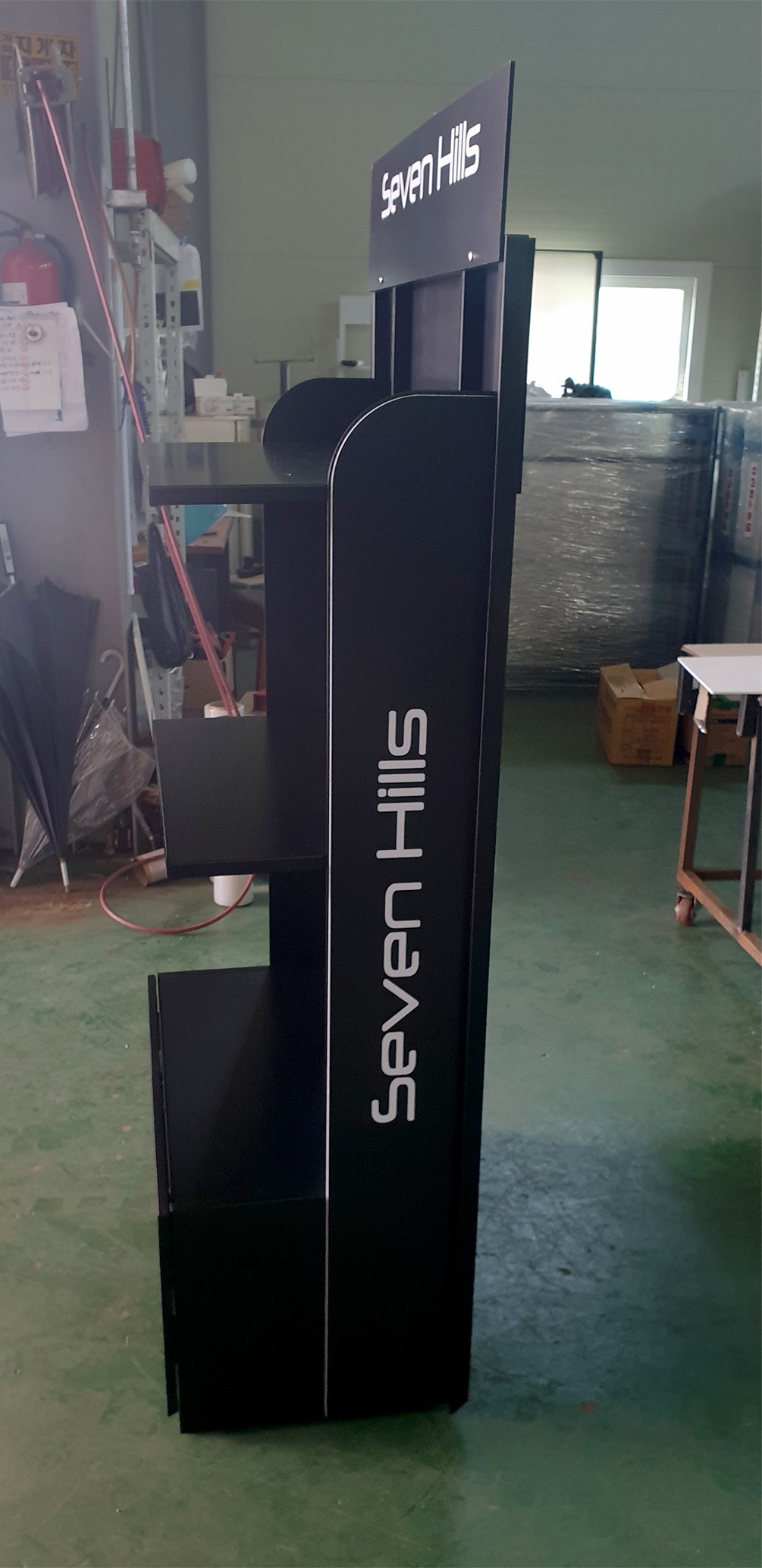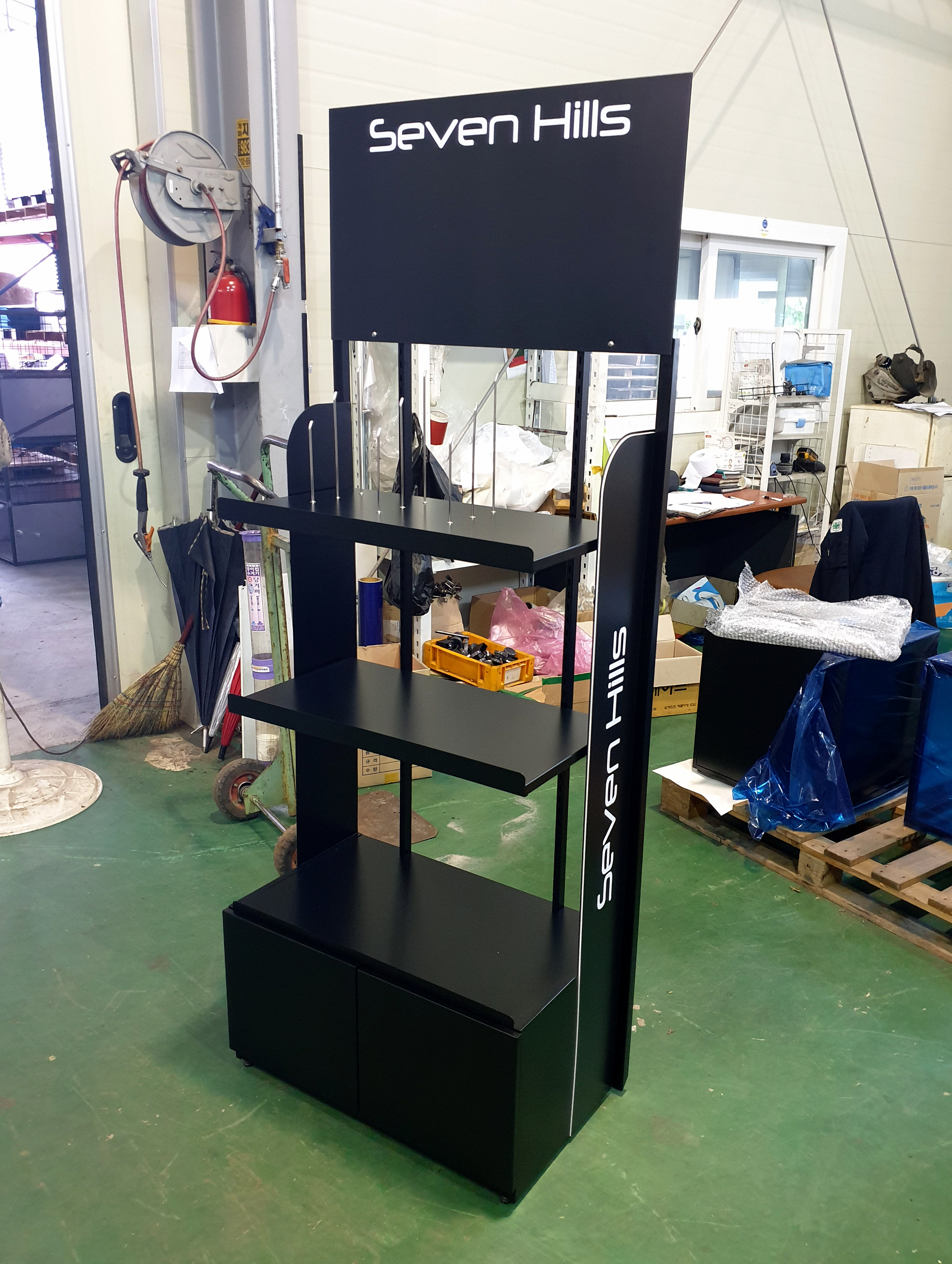 -상부 선반에 타공하여 시연 상품 진열용 후크 조립 활용.