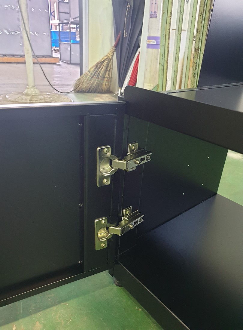 -하부 재고 수납 공간. (싱크대 경첩을 활용한 여닫이 양문 구성)