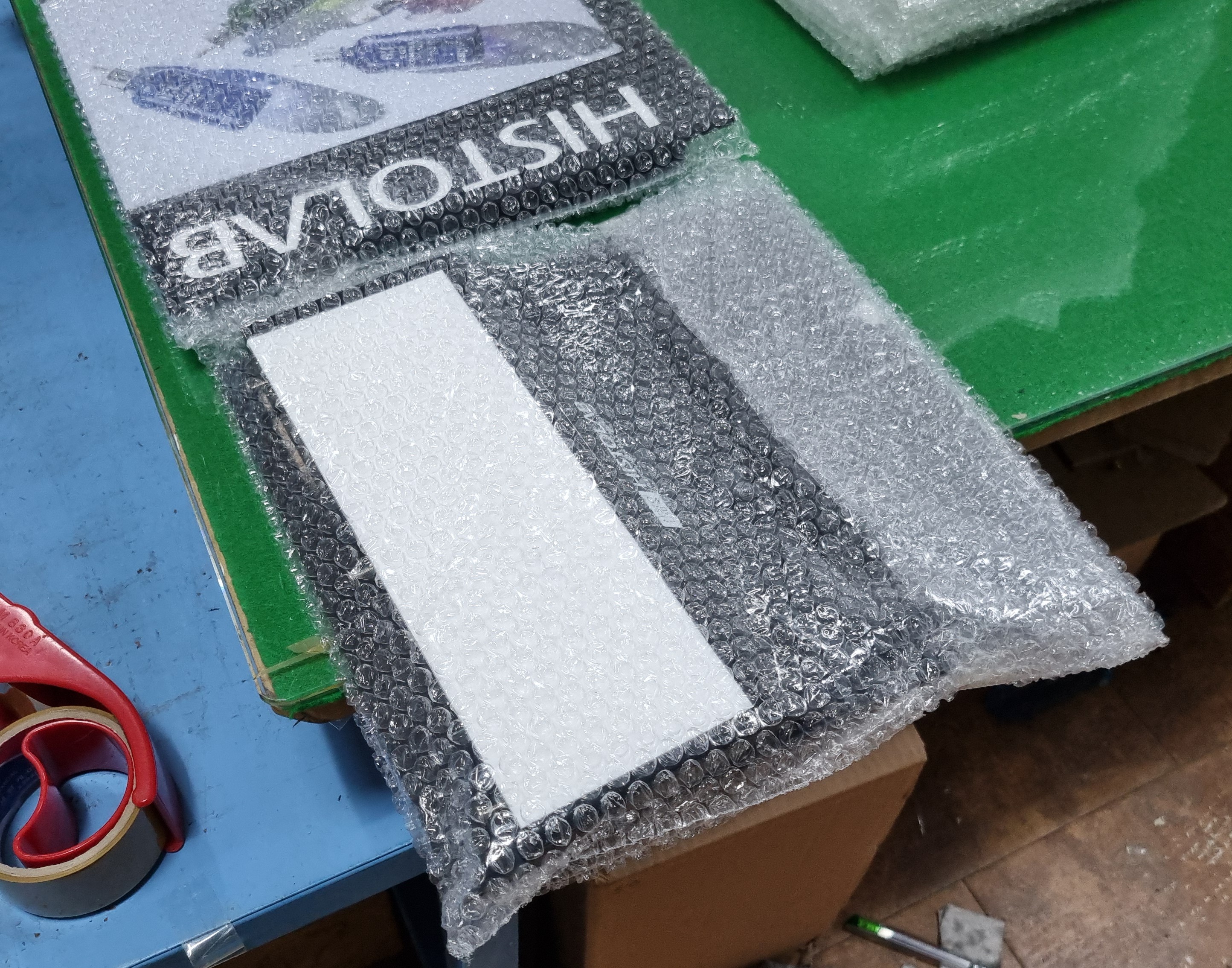 -아크릴 / 실사 출력, UV 출력 / 인서트 너트, 볼트 / 후면보드 분리 상태 / 개별 래핑 / 단위 박스 포장.