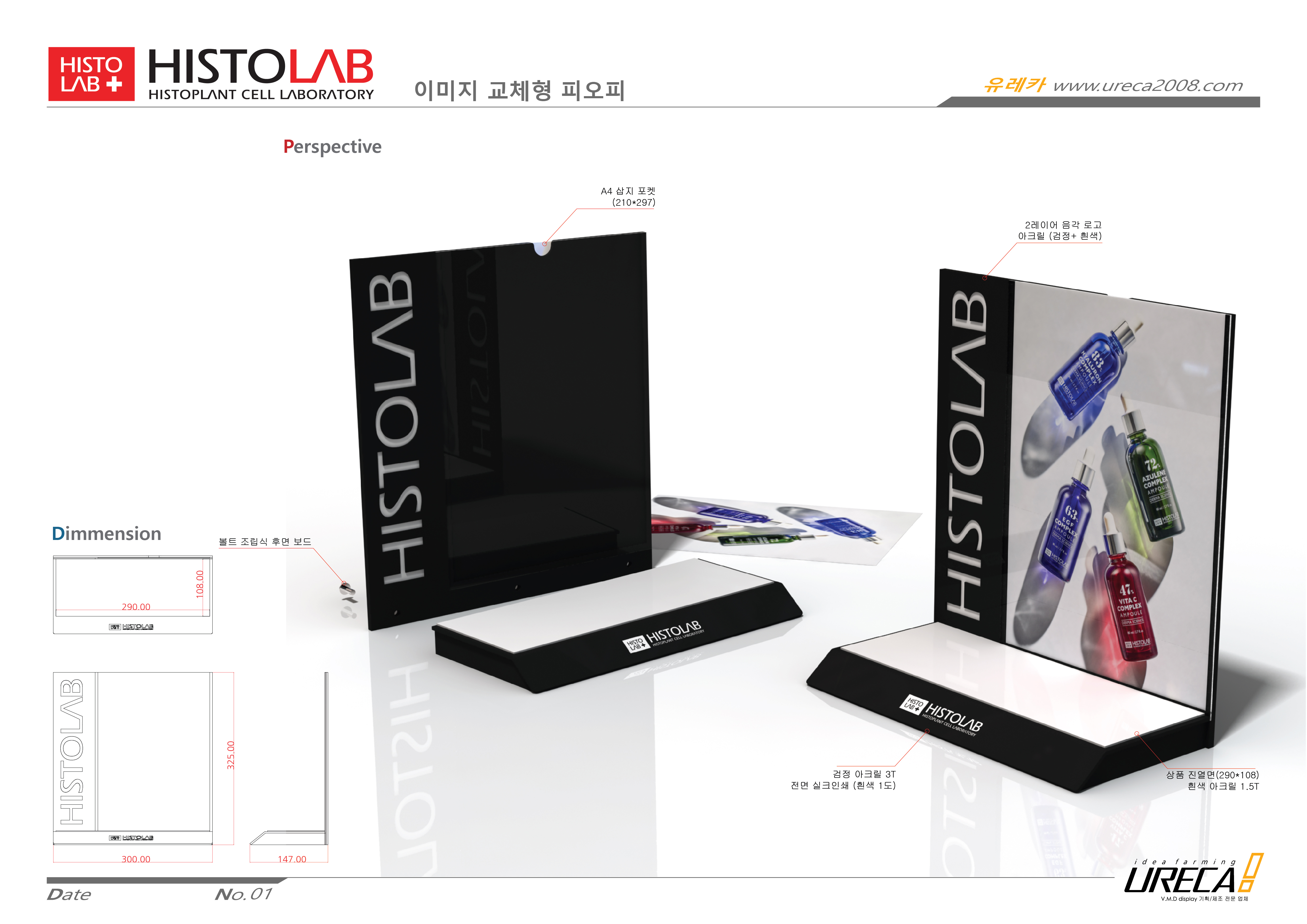 -요청 사항과 협의된 내용을 토대로 에스테틱 화장품 디스플레이 구체 사양 설계.