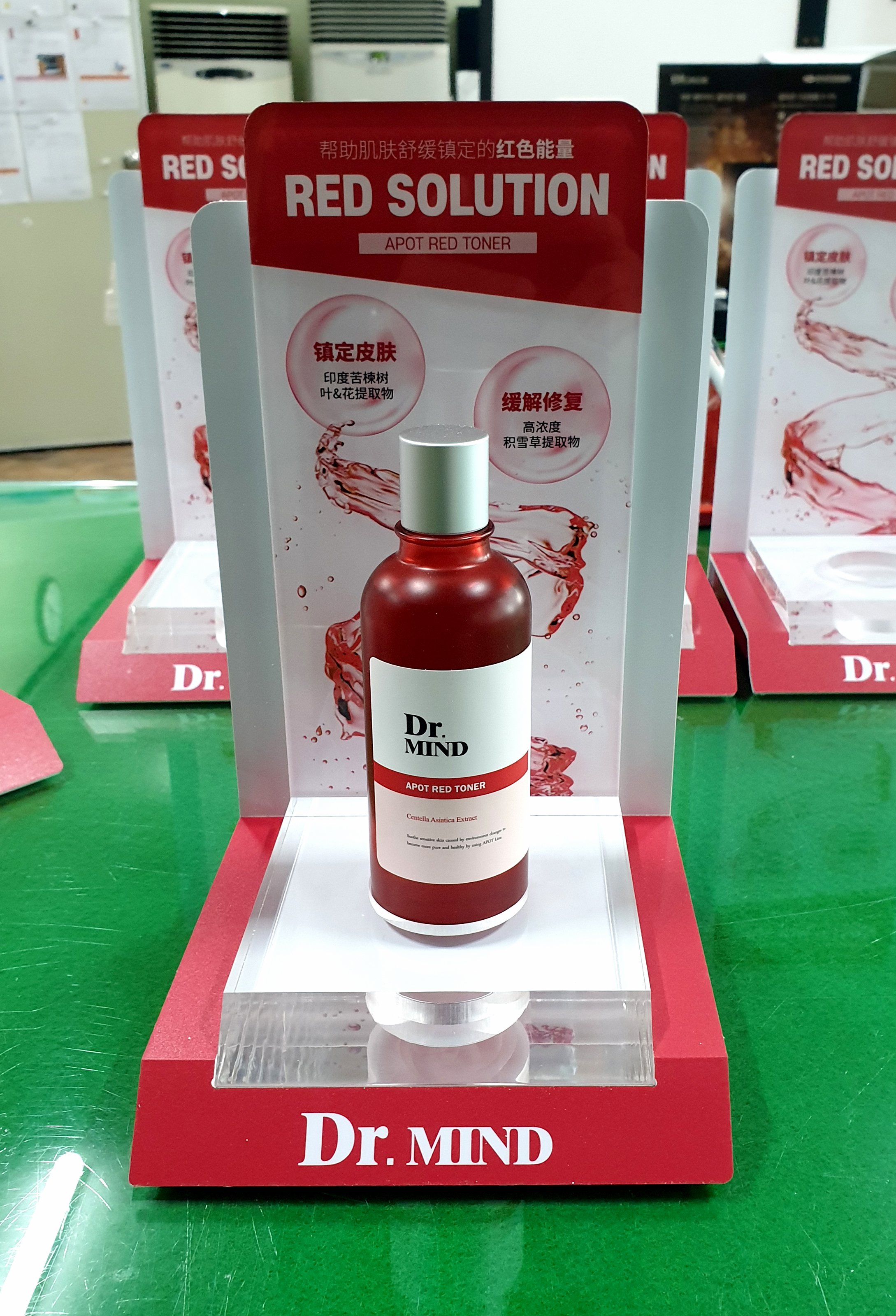 -조립 완료된 닥터마인드 화장품 면세점 진열대.