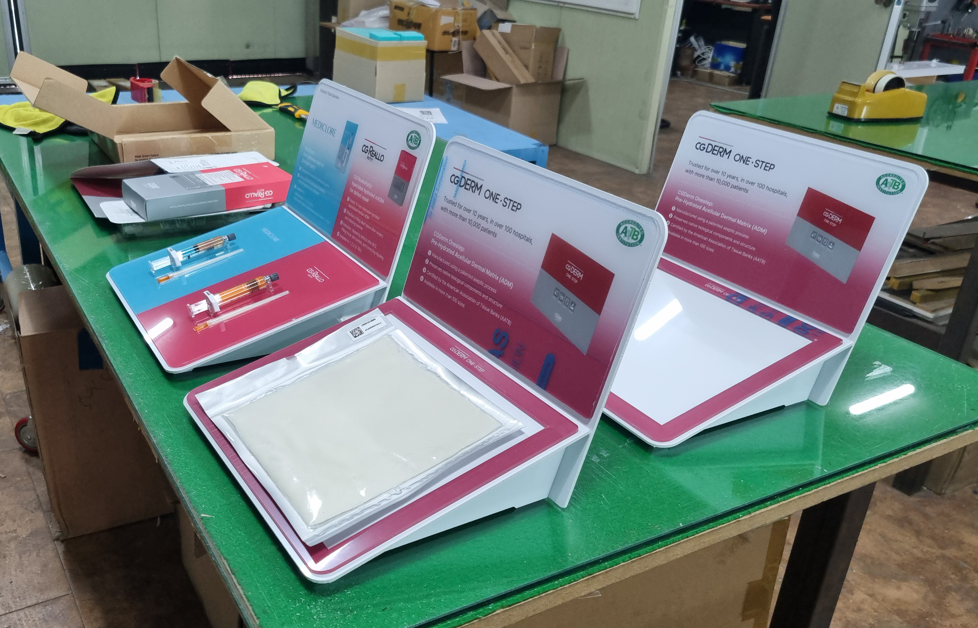 -제작 완료된 시지바이오 의료기기 2종 전시 집기.