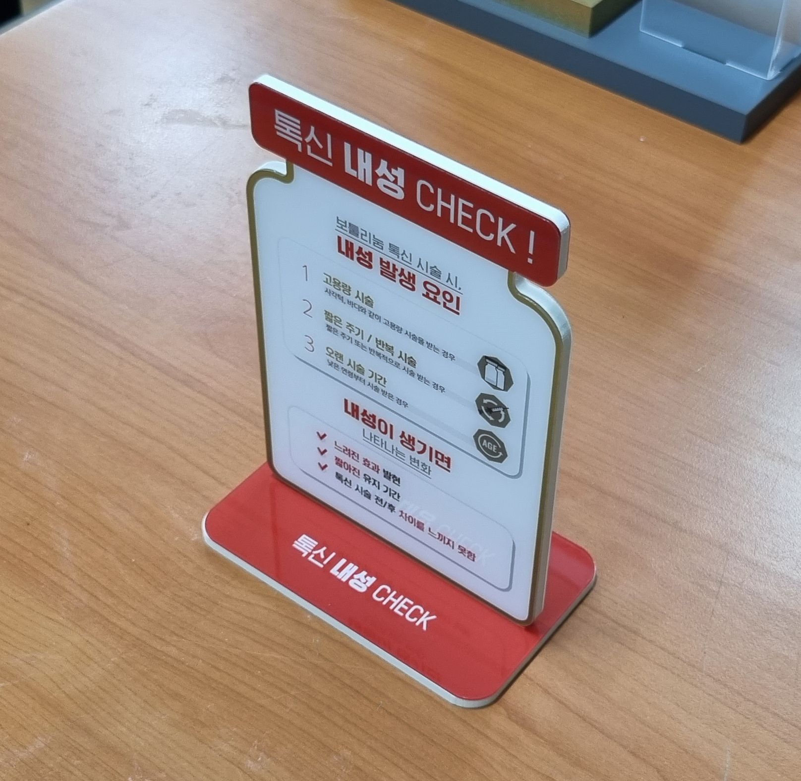 -병원 안내 데스크에 비치할 아크릴 양면 디스플레이보드 제작 요청.