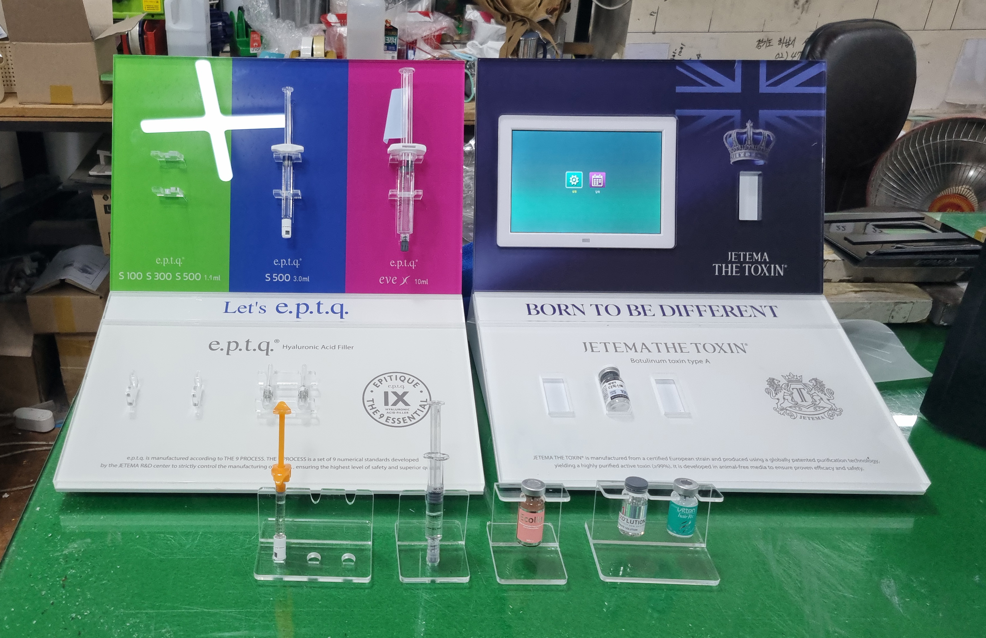 -디지탈액자 거치 가능한 바이알 4종 전시 집기.