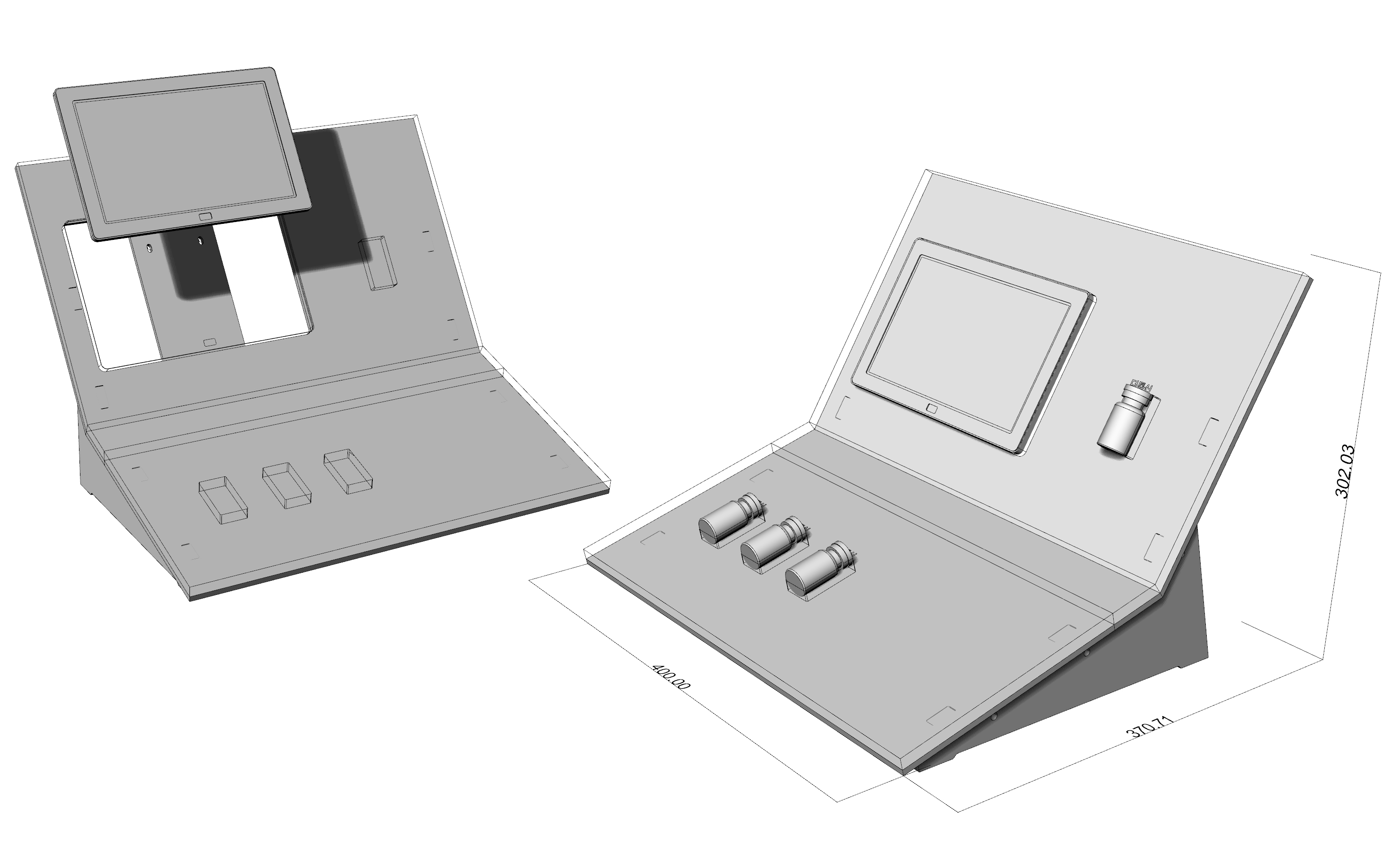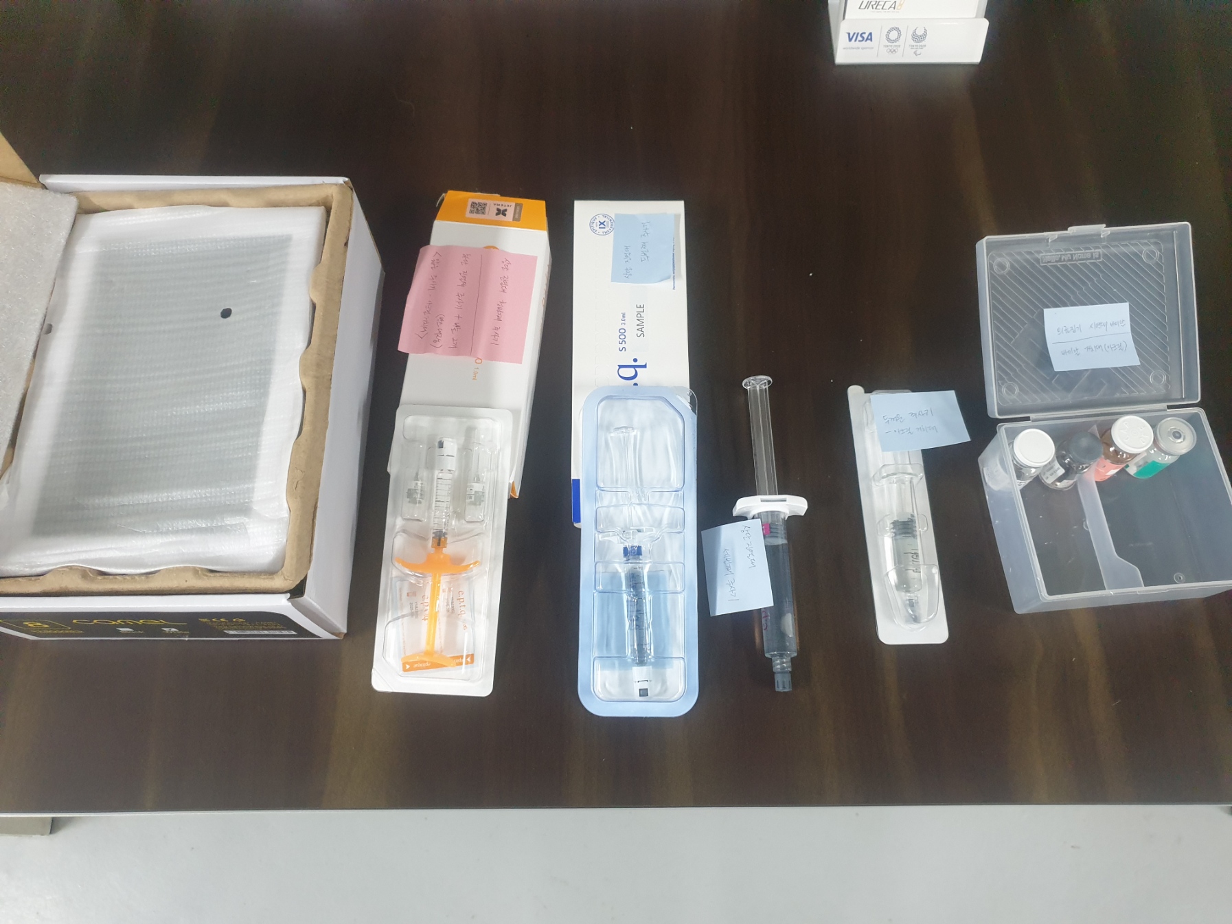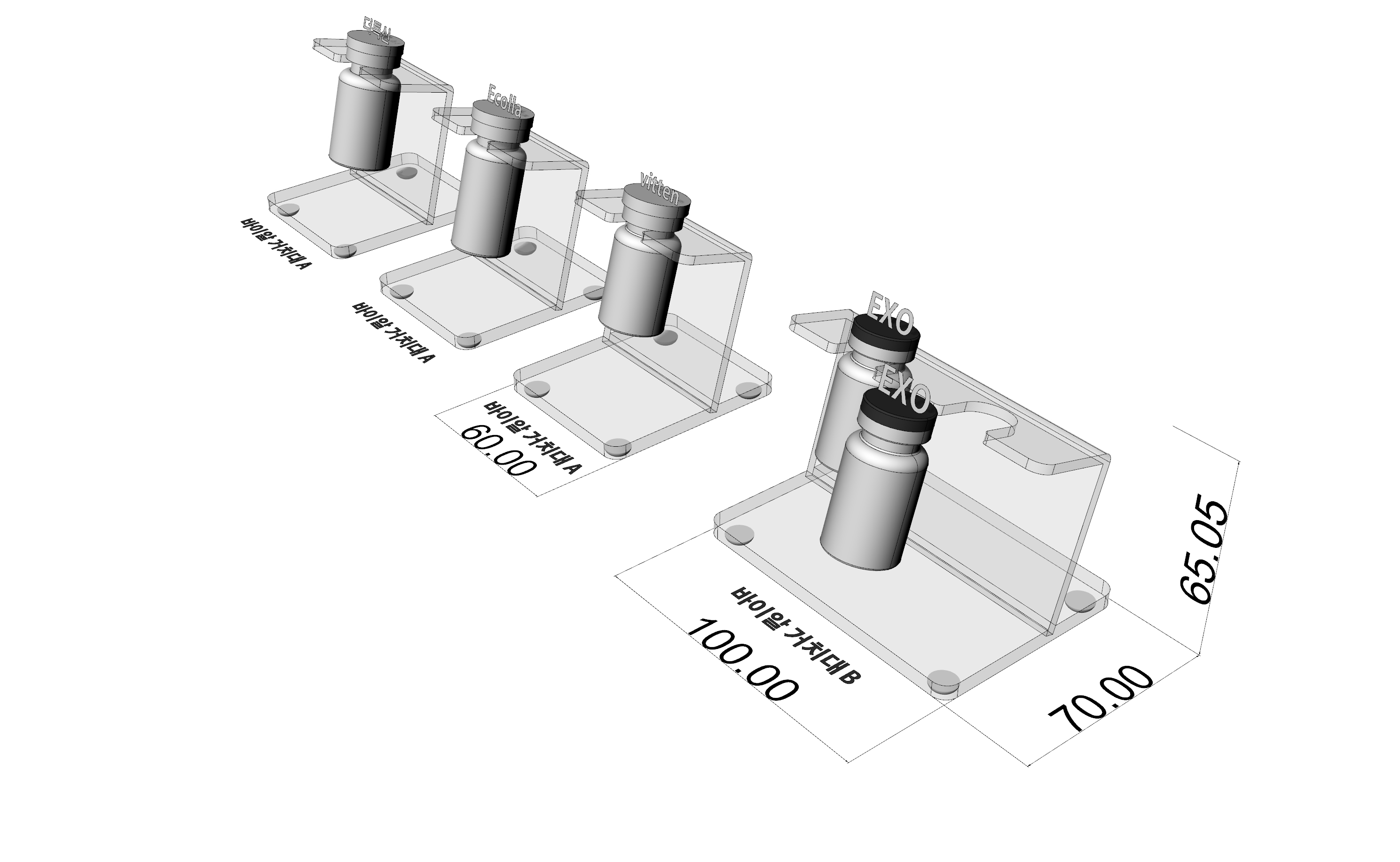 -다품종의 시린지 샘플과 바이알 샘플을 전시하기 위한 2종의 거치와 2종의 전시 집기 제작 요청.