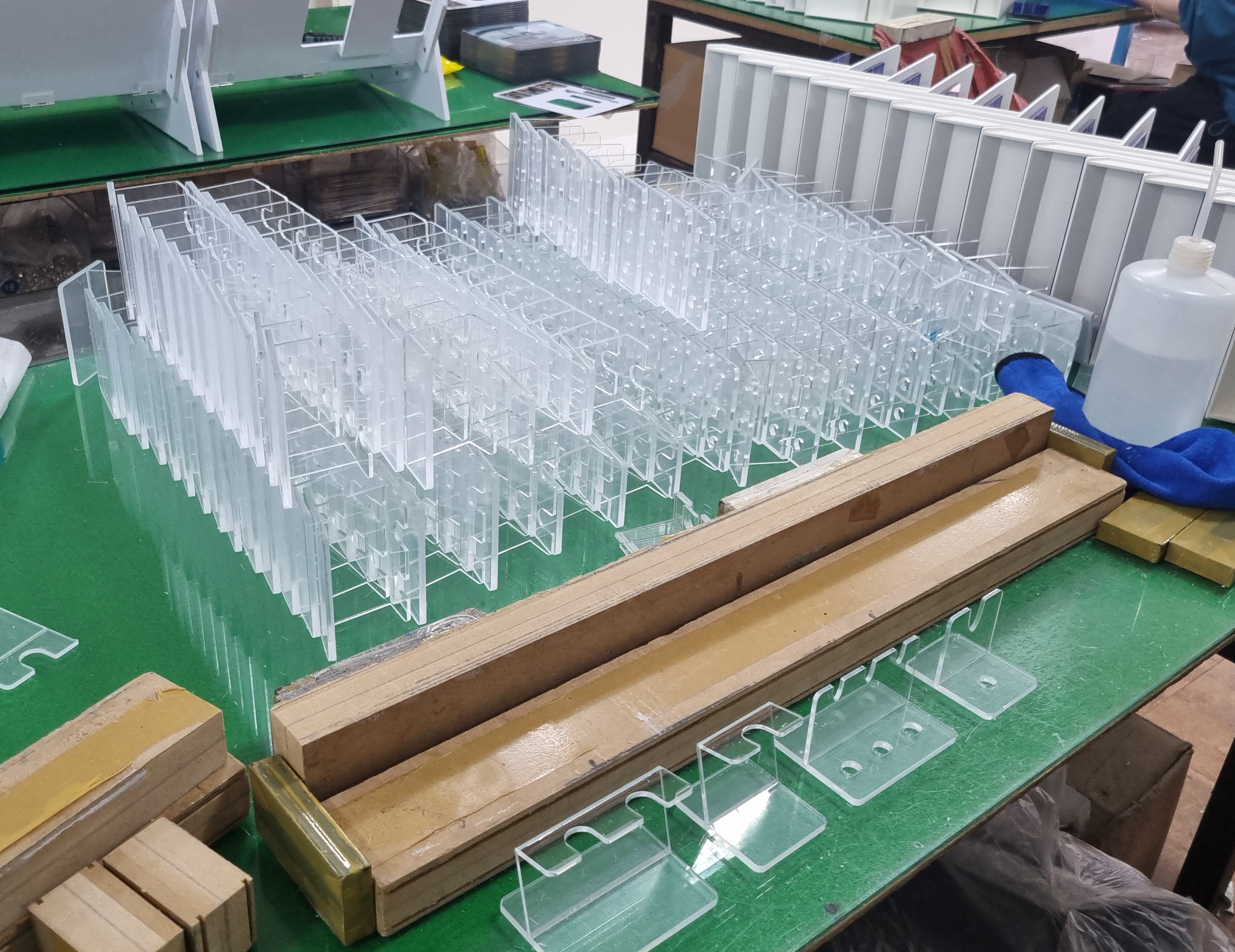 -제작 완료된 시린지, 바이알 아크릴 거치대 최종 검수.