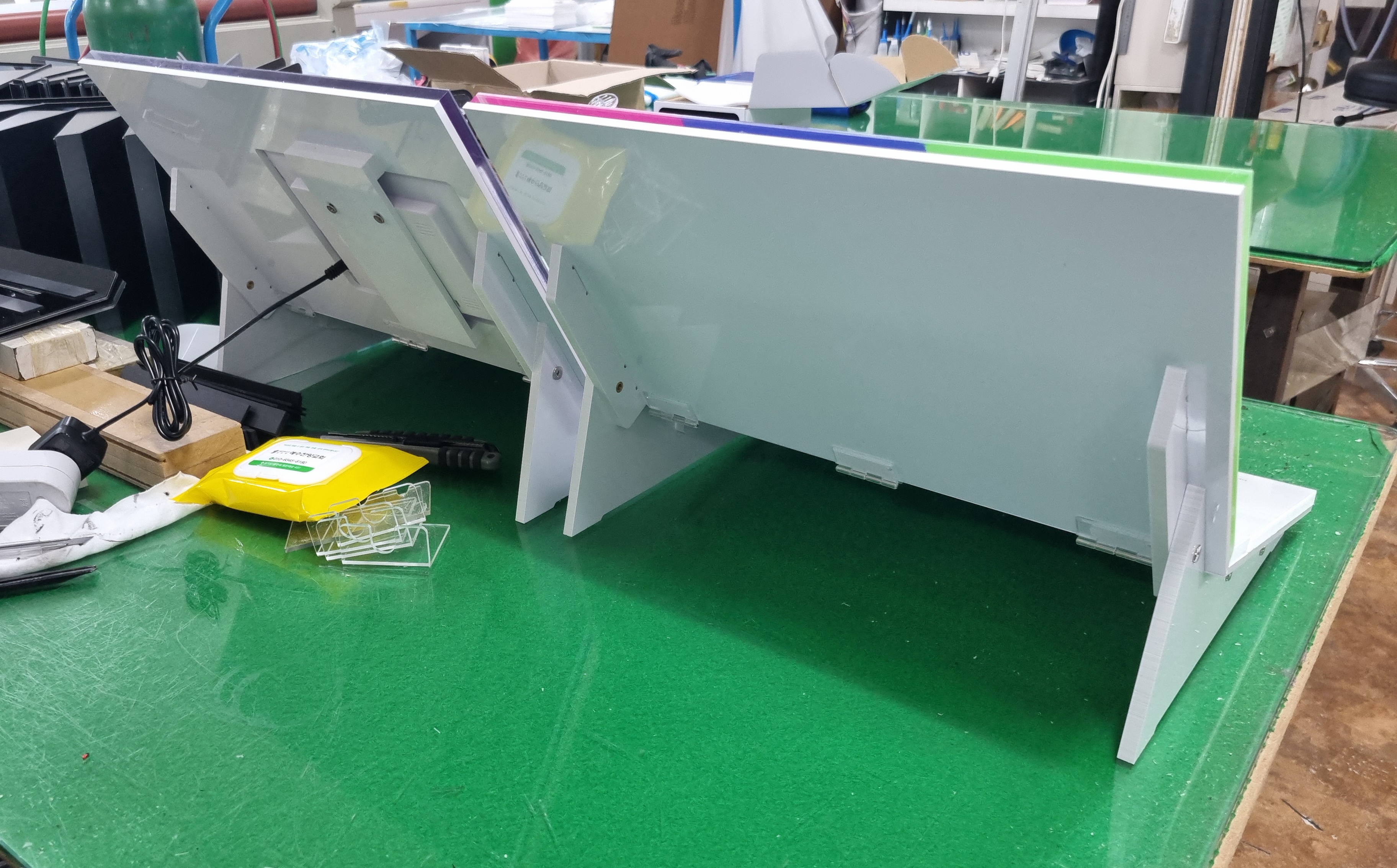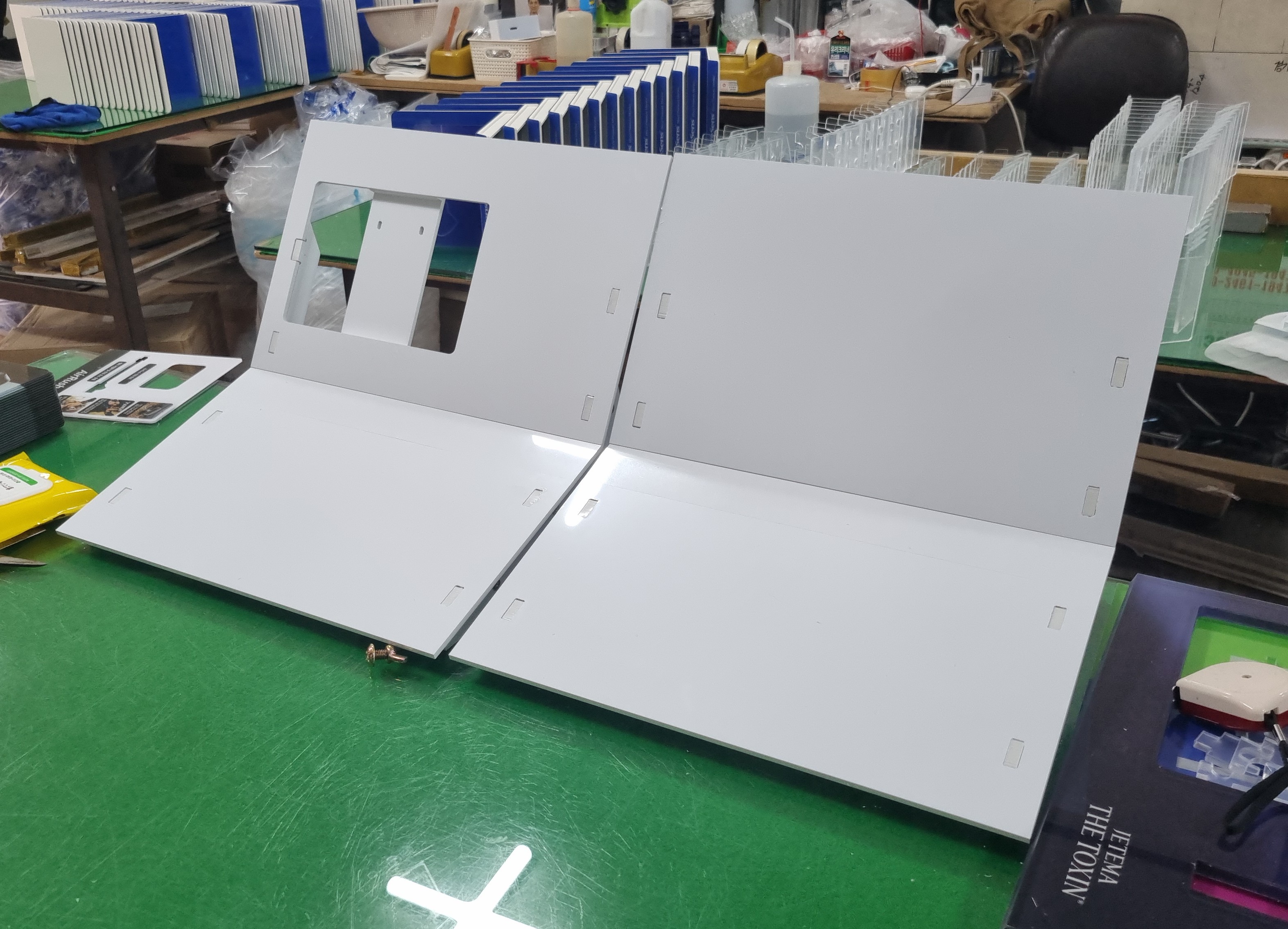 -전시 집기 후면 조립 구조와 디지탈액자 조립 구조.